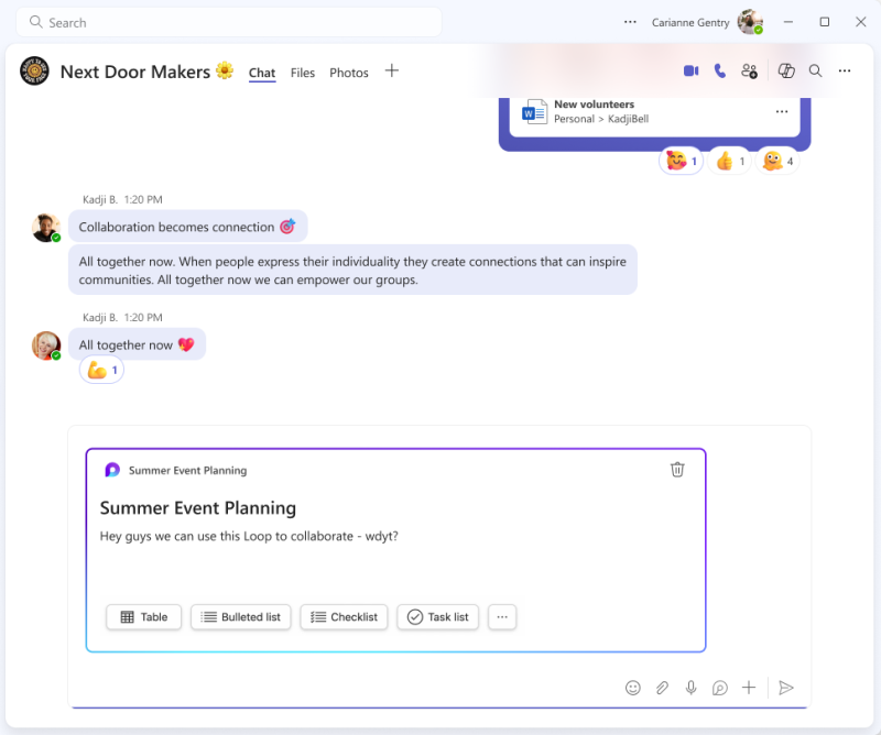 Now available to Teams Insiders, Microsoft Loop integration in Teams Free chat brings a new dimension to real-time collaboration, making teamwork more dynamic and interactive. With Loop components, users can co-create content directly within chat messages, ensuring everyone stays on the same page without switching between multiple apps. This seamless integration empowers teams to brainstorm, organize tasks, and update information collectively, all within their ongoing conversations.